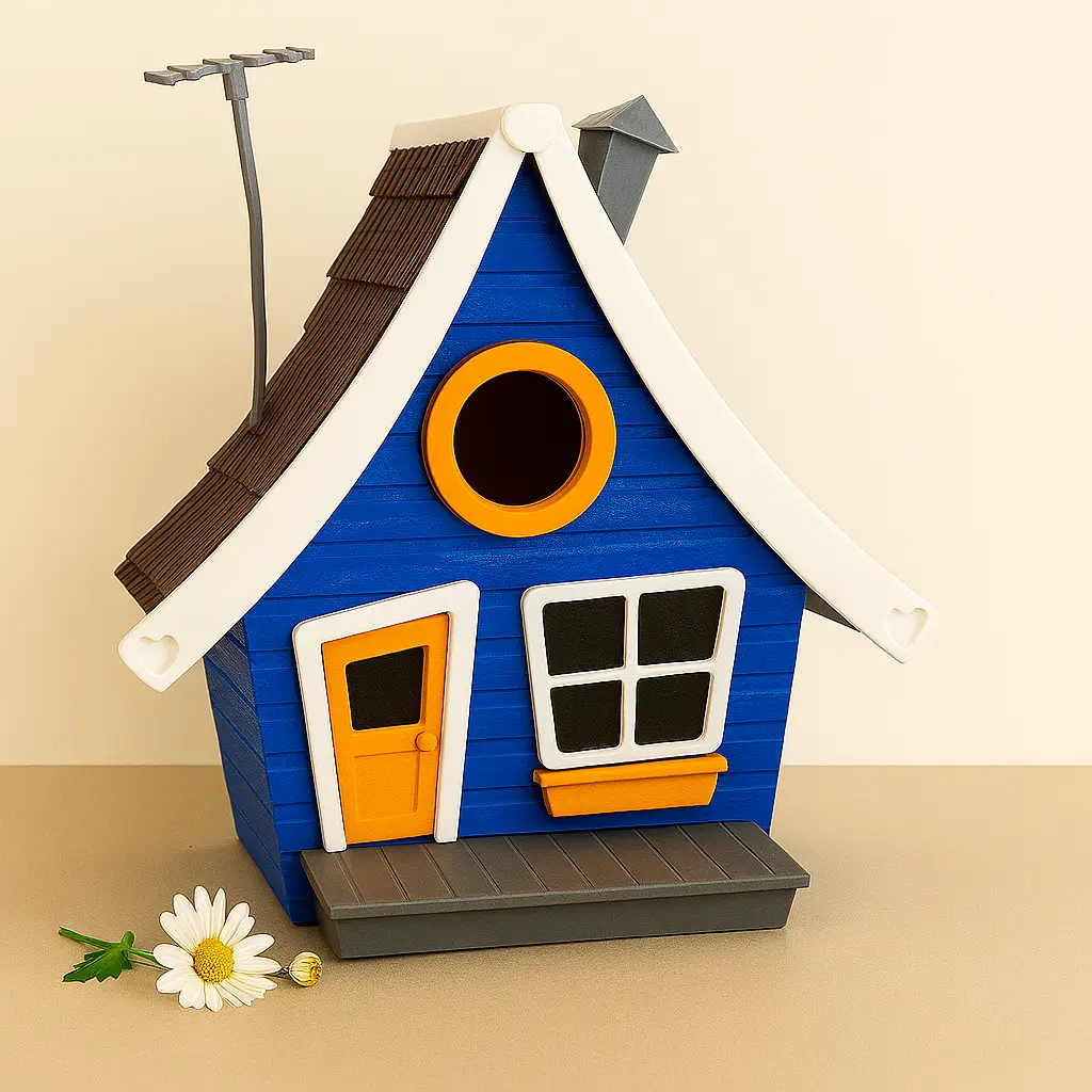 Gefertigt im 3D-Druckverfahren aus stabilem PLA+, ist der Nistkasten wetterfest, robust und langlebig. Nach der Brutsaison kannst du ihn dank Bodenklappe ganz unkompliziert reinigen – schnell, praktisch und ohne großen Aufwand. Ein Befestigungshalter ist im Lieferumfang enthalten, Schrauben jedoch nicht. So wählst du selbst die passenden Schrauben für Baumstamm, Zaun oder Hauswand und kannst das Tiny Haus sicher befestigen.